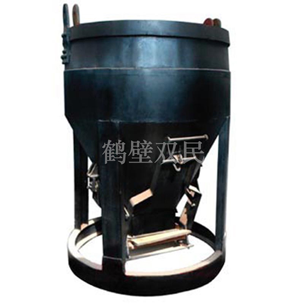 底卸式吊桶是供立井井筒鑿井時向砌壁工作面輸送混凝土的專用鑿井設備。產品型號TD—1.5實際容積≥1.65M3桶體外徑1450mm吊桶高度≥1730mm用底卸式吊桶輸送混凝土的優點是: