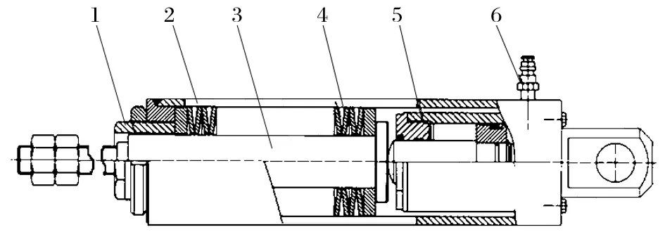 1.螺紋內(nèi)套筒 2.外套筒 3.驅(qū)動器拉桿 4.碟形彈簧 5.千斤頂 6.管接頭